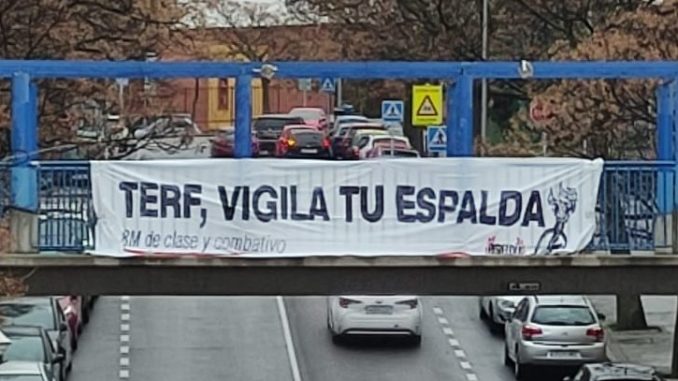 Esta pancarta ha aparecido en Vallekas. El trasgenerismo en acción. @policiademadrid @policia
