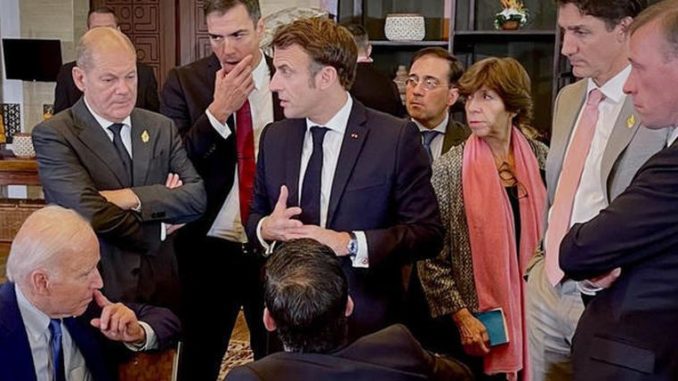 Hoy la situación es francamente complicada para el proyecto de la UE. El debilitamiento es mayor cada día que pasa, y los Estados más importantes que conforman este proyecto adoptan líneas propias en función de sus intereses particulares, que entran en conflicto entre sí. La dependencia creciente de la UE hacia los EEUU, para mayor beneficio de estos, agudiza aún más las contradicciones en el seno de la Unión. El bando proyanqui sin matices, integrado por los Países Bálticos y Polonia, junto con el Reino Unido -ya fuera de la UE-, forma un bloque guerrerista sin disimulos, partidario de acelerar al máximo el proceso de la guerra de la OTAN contra Rusia en Ucrania, no vaya a ser que aparezca alguna oportunidad para gestionar la paz. Francia y Alemania van a su bola, sin abandonar en lo esencial la estrategia marcada por los EEUU. El Gobierno de España, de bufón, como es habitual. El reciente viaje de Pedro Sánchez a Pekín, vendido como un hito histórico, se quedó absolutamente en nada, hasta el punto de que los propios medios de comunicación que lo inflaron dejaron de hablar de ello ante su evidente fracaso, según las expectativas artificialmente creadas.