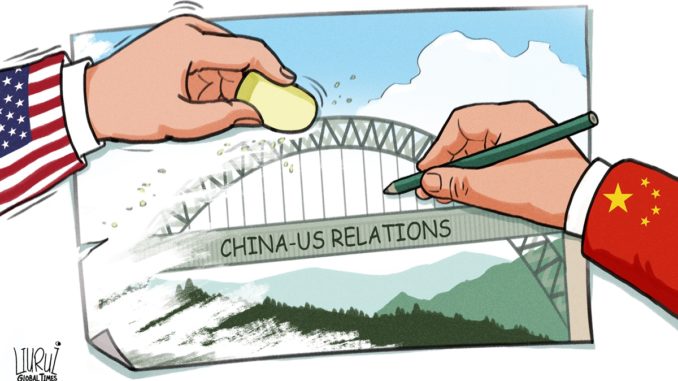 China siempre ha abordado y desarrollado las relaciones entre China y Estados Unidos con gran buena voluntad y paciencia, que es el sentido de responsabilidad de China como país importante. Pero Washington no debería hacerse ilusiones, nunca podrá hablar con China mientras cabalga sobre su cabeza. China apoya la comunicación y el intercambio basados en el respeto mutuo, comprometidos con la coexistencia pacífica, la cooperación de beneficio mutuo, con el fin de promover la mejora de las relaciones entre China y Estados Unidos. Sin embargo, el «compromiso con China» enfatizado por los Estados Unidos es a menudo solo un espectáculo, para apaciguar a sus aliados y otros países preocupados por el deterioro de las relaciones entre China y Estados Unidos y también para echar la culpa a China. Además, Washington intenta imponer presión sobre China con el llamado compromiso. Casi cada vez que vienen sus funcionarios de alto rango, traen una larga lista de las llamadas demandas.