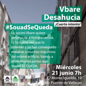 Han tirado la puerta abajo y desahuciado a Souad. ¡Desahucian al obrero, rescatan al banquero! Después de 14 años viviendo, #Vbare se hizo con la propiedad de todo el bloque y ha triplicado el alquiler de todos los vecinos