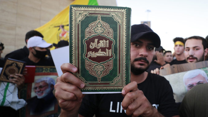 Manifestantes iraquíes se congregaron este el jueves en la plaza Tahrir de Bagdad para protestar contra una quema de ejemplares del Corán en Estocolmo autorizada por las autoridades suecas.