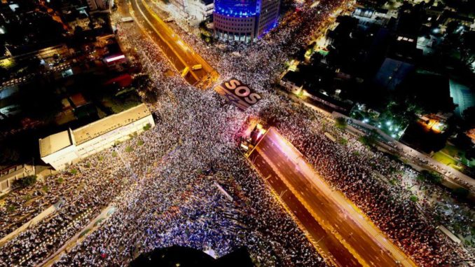 En vísperas de la votación por la reforma, el pasado fin de semana, los manifestantes se han movilizado otra vez. Para presionar a los congresistas, decenas de miles de manifestantes, que llegaron el pasado sábado a Jerusalén tras haber recorrido a pie 70 kilómetros desde Tel Aviv, se concentraron frente a la Knéset, cerca de la cual decenas de opositores instalaron tiendas de campaña, pues planean permanecer allí durante tiempo indefinido. Por otra parte, miles de médicos de todo el país realizaron un mitin en la urbe, pues consideran que la reforma es un ataque a la democracia, sin la que «no hay atención médica».