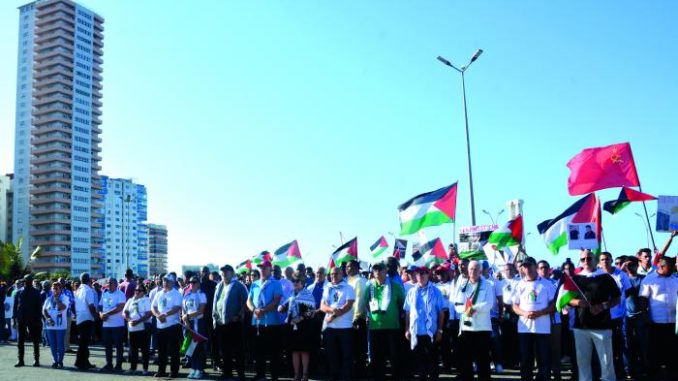 «Cada herida en aquella patria es también una herida en el corazón de Cuba. Cada mujer, anciano o niño martirizado allí nos estremece en lo más profundo. Cada hogar destruido nos consterna y nos impulsa a seguir junto a la noble causa palestina», afirmó Meyvis Estévez Echeverría, segunda secretaria del Buró Nacional de la Unión de Jóvenes Comunistas (UJC).