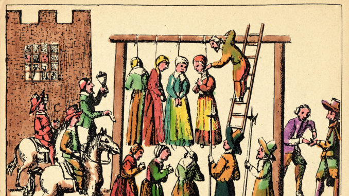 Se estima que entre mediados del siglo XVI y el siglo VXIII, unas 4.000 escocesas acusadas de brujería fueron torturadas para obtener confesiones y ejecutadas en virtud de una ley que definía la brujería como un delito punible con la muerte, sin identificar específicamente qué constituía el delito. La caza de brujas en Escocia comenzó a tomar gran impulso a partir de 1590, hasta que en 1736, el Parlamento británico derogó tanto su ley de brujería como la escocesa.