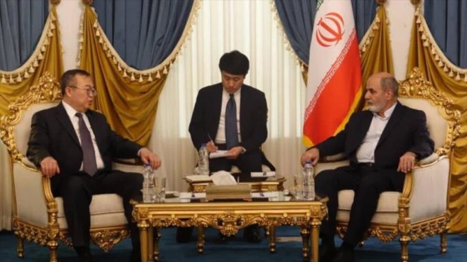 Ali Akbar Ahmadian durante una reunión sostenida el miércoles en Teherán con Liu Jianchao, jefe del Departamento de Enlace Internacional del Partido Comunista Chino, agradeció el apoyo del Gobierno chino al oprimido pueblo palestino en el Consejo de Seguridad de las Naciones Unidas (CSNU).
