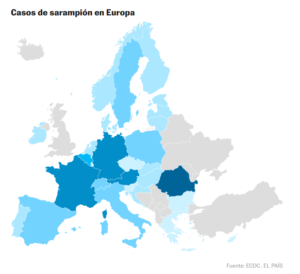 Las autoridades europeas habían alertado del riesgo que suponen las bajas coberturas vacunales frente al sarampión y los peores augurios se han cumplido. La enfermedad, fácilmente prevenible con dos dosis y que prácticamente desapareció del continente durante los confinamientos, ha resurgido en los últimos meses, y lo ha hecho con fuerza en algunas zonas.