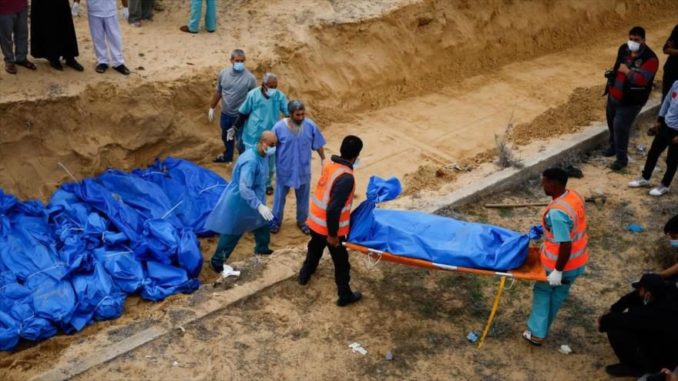 El comunicado ha considerado estas prácticas israelíes como “una violación flagrante de todas las normas y leyes internacionales pertinentes”, y agregado que “este cementerio puede ser uno entre muchos otros cementerios que aún no han sido descubiertos”.