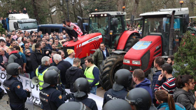 Precisamente las organizaciones profesionales agrarias con representación en la provincia de Salamanca, Asaja, Coag, UPA y UCCL, auguraron a primera hora de este jueves una tractorada «masiva» en la capital del Tormes aunque, según especificaron, «pacífica y respetuosa» para mostrar su oposición a «los ‘lobbies’ medioambientalistas» que, desde su punto de vista, «condicionan las políticas europeas, no dejan producir y no hacen más que poner trabas al sector que vive y produce de lo que el medio ambiente genera». Así lo ha manifestado el presidente de Asaja Salamanca, Juan Luis Delgado, en declaraciones recogidas por Ical en el Mercado de Ganados al inicio de la protesta comunicada para este jueves en la capital del Tormes tras varios días de movilizaciones espontáneas.