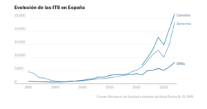 La gonorrea registra un gran auge, con 23.333 casos notificados en 2022, y duplica las cifras de 2020. La clamidia también aumenta hasta las 26.518 infecciones contabilizadas, lo que supone un incremento del 266% respecto a 2016. Y los 734 casos de sífilis registrados en 2002 han ascendido en estas dos décadas hasta 8.141. Unas cifras que alejan el objetivo del Ministerio de Sanidad de eliminar el VIH y las infecciones de transmisión sexual como problemas de salud pública en 2030, recogido en el Plan Estratégico para la Prevención y Control de la Infección por el VIH y las ITS en España.