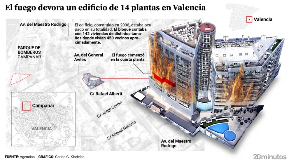 Queremos trasladar nuestro sentido pésame a los familiares y amigos/as de las víctimas, que aún no sabemos cuántas han sido, del incendio acontecido en Valencia. Se ha confirmado ya que el poliuretano, material altamente inflamable, se había empleado para el aislamiento de las placas de aluminio que se utilizaron en la construcción de las fachadas de los edificios afectados por el incendio. Cabe recordar que estos bloques fueron levantados en la época en que se estaba terminando el ciclo especulativo en la construcción de principios del siglo XXI -durante el Gobierno de Zapatero- y que se trataba de no perder la oportunidad de enriquecerse rápidamente con la burbuja inmobiliaria. Ahora pretenden hacer creer que el problema fundamental del incendio estuvo en el viento (que obviamente favorece la extensión de éstos) y no en la presencia de material altamente combustible, como sucede en los incendios forestales. Al final nos van a tratar de convencer de que todo lo que ocurre es una consecuencia del cambio climático. En nuestra opinión, la mayoría de las desgracias que afectan a nuestros pueblos tienen que ver con el Régimen del 78 y el capitalismo ultraneoliberal en el que éste se enmarca.