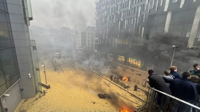 #FarmerProtest2024 just now in #Brussels pic.twitter.com/nHxkX902yi