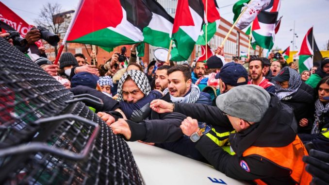 “Del río al mar”, han cantado los neerlandeses para exigir la liberación de Palestina, en medio de medidas de seguridad reforzadas en la zona circundante al museo.