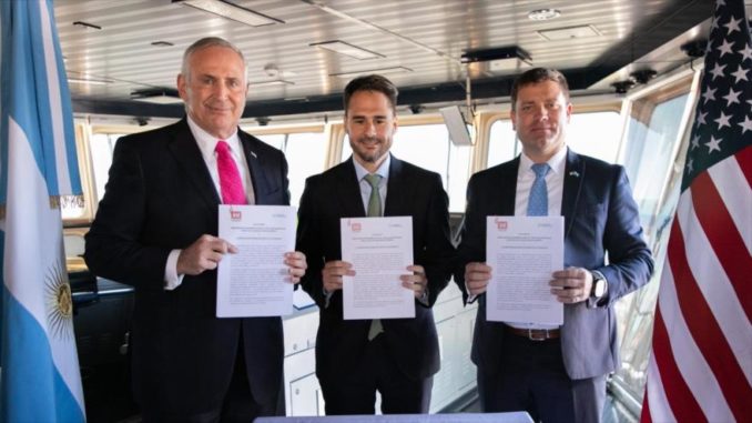 El secretario de Empresas y Sociedades del Estado de la Jefatura de Gabinete de la Nación, Mauricio Gonzalez Botto; el embajador de EE.UU. en Argentina, Marc Stanley; el interventor de la AGP, Gastón Benvenuto; y el representante del Cuerpo de Ingenieros del Ejército de EE.UU., Adriel McConnell, suscribieron el documento.
