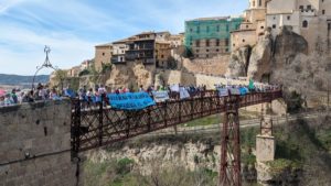 - La cadena humana promovida por Pueblos Vivos Cuenca arrancó en la Plaza Mayor, discurrió por el puente de San Pablo, Auditorio, calle de los Tintes y Parque del Huécar.