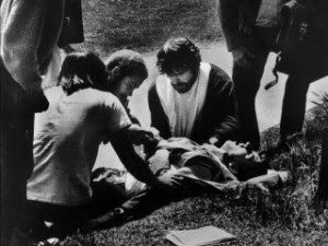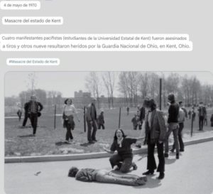 El día de hoy fueron visualizados francotiradores en los tejados en el estado de Ohio a medida que las protestas contra las políticas del gobierno de Biden hacia los palestinos tomaban fuerzas; tal como se puede ver en el video. Esta situación nos recuerda a los hechos que vemos en las demás imágenes de lo que se conoce como la Masacre de Kent. Veremos algo breve de esa trágica historia: El presidente Richard Nixon se dirige a la nación en abril de 1970 para explicar la expansión de la Guerra de Vietnam en Camboya. Los activistas contra la guerra vieron esto como una traición, pues había prometido poner fin a la guerra cuando fue elegido. (Archivos Nacionales) El viernes 1 de mayo de 1970, los estudiantes de Kent State realizan una protesta en el campus, la primera de varias. Una noche de violencia en el centro de Kent es seguida por una marcha estudiantil al edificio ROTC del campus al día siguiente. Algunos estudiantes intentan incendiar el edificio. Los manifestantes afirman haber dejado el edificio intacto y en manos de la policía del campus, pero el edificio quedó destruido. Estudiantes corren a cubrirse después de que la Guardia Nacional abre fuego. Veintiocho guardias dispararon contra la multitud durante 13 segundos, hirieron a nueve estudiantes y mataron a cuatro. (Foto: Servicio de Noticias de la Universidad Estatal de Kent) ¿Ahora entendemos lo que señala el presidente ruso como la política Espejo de Washington? Acusan a los demás de malas acciones cuando lo que ven es su propio reflejo.