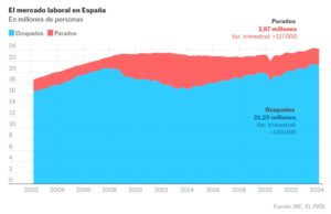 Y, pese a estas cifras negativas, España emplea a más personas que nunca en un primer trimestre: son 21,25 millones, 616.000 más que en la misma época de 2023. Esta subida anual es superior a la del año pasado (+438.000), un ejercicio buenísimo para el empleo, pero no tanto como en 2022 (957.000), en pleno acelerón post pandémico. También es un alza superior a la de 2019 (+597.000), antes de la pandemia y otro año robusto para el mercado de trabajo.