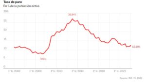 El análisis es similar en un vistazo a los datos de paro. En la última década, de nuevo excluyendo 2020, el desempleo creció una media de 27.500 personas, mientras que este trimestre lo ha hecho en 117.000 personas. Tanto el año pasado como el anterior el paro subió con menos intensidad, en 104.700 y 66.010 personas respectivamente. Desde el Gobierno atribuyeron estos crecimientos tan destacados al aumento de la población activa (la suma de los que trabajan y los que buscan empleo), que marca un récord en un primer trimestre con 24,22 millones de personas.
