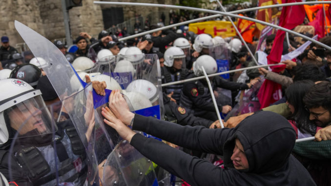En Estambul, miles de miembros de organizaciones sindicales, trabajadores y activistas políticos se enfrentaron a la Policía en su intento por llegar a la plaza Taksim, en el centro de la ciudad turca.