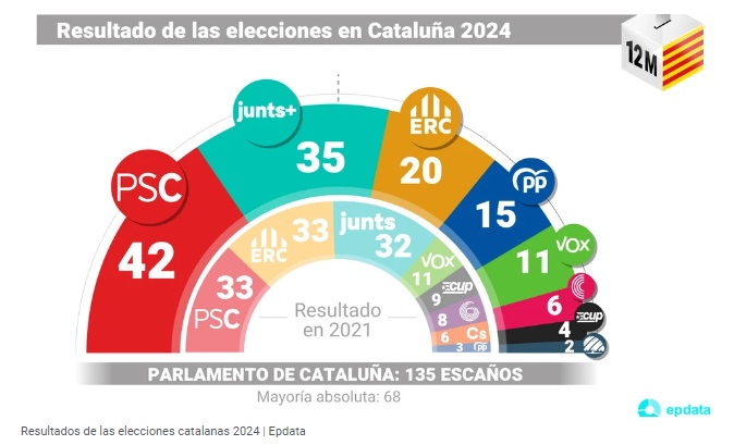 Los comicios en Cataluña, como los analistas medianamente rigurosos concluyen, han arrojado unos resultados no concluyentes: no es nada fácil elegir al nuevo Presidente de la Generalitat y no hay que excluir una repetición de elecciones. Se hacen constantes referencias a que si ERC fuerza una repetición de elecciones no apoyando la investidura de Illa, del PSC, cosecharán un desastre aún mayor que el obtenido en las Elecciones del pasado 12 de mayo. No sabemos lo que hará finalmente ERC, pero hay que partir de la base de que si contribuyen a la elección de Illa, su descrédito ante la sociedad catalana aumentará de forma significativa. De hecho, el descenso tan importante de su número de votantes parece estrechamente relacionado con su posición de claudicación ante el Gobierno de Pedro Sánchez. Por otro lado, si se evita la repetición de autonómicas y Salvador Illa es investido como President, no es improbable que Junts deje de apoyar al Gobierno español, con lo cual antes o después tendrían que convocarse elecciones generales por la pérdida de la mayoría parlamentaria que sostiene al Ejecutivo de Pedro Sánchez, y entonces ERC se vería en una tesitura aún más difícil que en el caso de que se repitan unas autonómicas por no apoyar a Illa. No creemos que los dirigentes de ERC se olviden de que durante mucho tiempo tuvieron solamente uno o dos diputados en el Parlamento español, y que el salto para constituir un grupo parlamentario propio se produjo en el contexto del Procés en Cataluña. Cabe recordar, por otra parte, que el PP de Feijóo le ganó al PSOE con una diferencia de 17 escaños en las Elecciones de julio de 2023, pero entonces Pedro Sánchez tuvo clarísimo que él era quien tenía que gobernar, pese a esa diferencia significativa de escaños. Tal consideración no les parece válida ahora en Cataluña: Puigdemont obtuvo siete escaños menos que Illa, no 17, y las posibles alianzas electorales no impiden que pueda alcanzar la presidencia, aunque tampoco le resulte fácil. Si ERC no apoya al candidato del PSC, siempre queda la posibilidad, y no es descartable ni sería la primera vez, que el PSC recurra a la opción de buscar los apoyos del PP, e incluso de Vox.