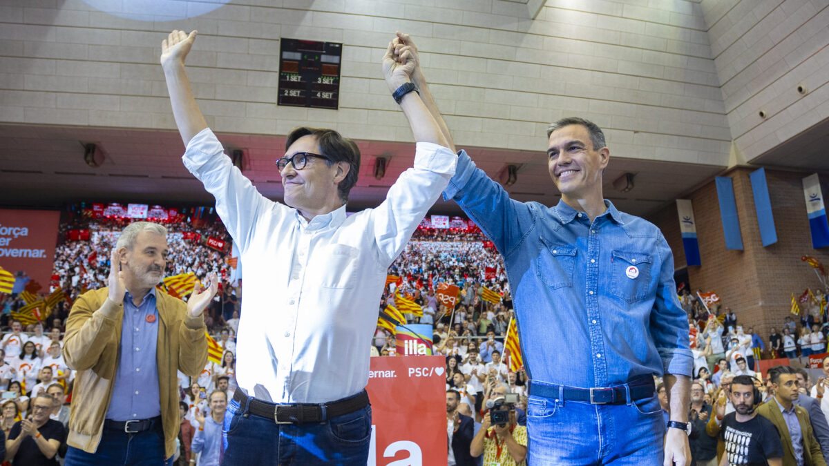 Pedro Sánchez e Illa durante un mítin del PSC