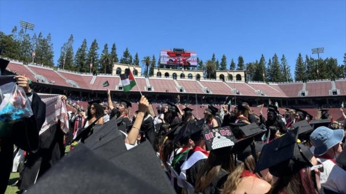 Unos 500 estudiantes propalestinos de la Universidad de Stanford abandonaron la ceremonia de graduación en rechazo al genocidio que lleva a cabo Israel en Gaza.