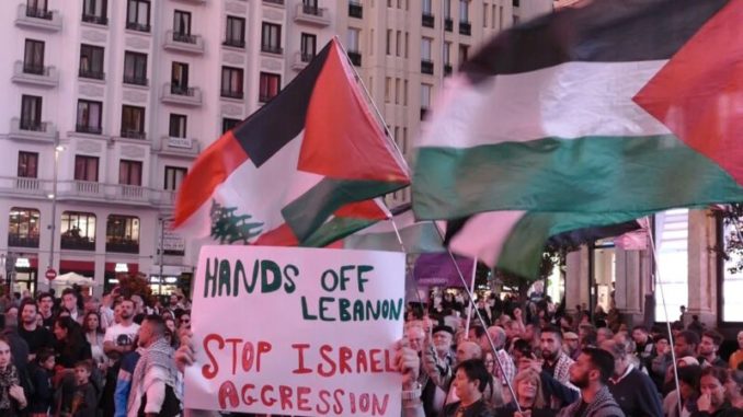 La concentración, que ha sido convocada por Samidoun y a la que han adherido otras organizaciones, es una de las primeras protestas en el Estado español contra la ofensiva militar sionista en el Líbano.