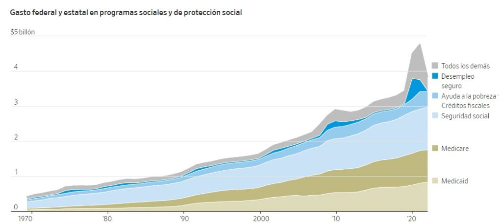 La dependencia de los estadounidenses del apoyo gubernamental está aumentando, impulsada por programas como el Seguro Social, Medicare y Medicaid.
