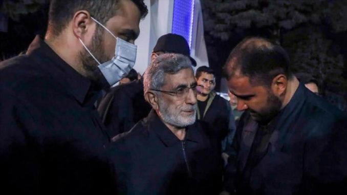 El comandante del Cuerpo de Guardianes de Irán Ismail Qaani asiste al homenaje del mártir general Nilforoushan, desbaratando todo rumor de su posible asesinato.
