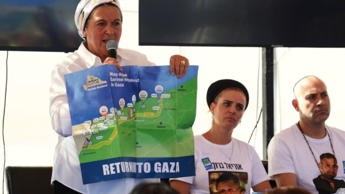“En menos de un año” se podrá ver cómo “los árabes desaparecen” de la Franja, sostiene Daniella Weiss, líder del movimiento supremacista, en un acto al que se han unido algunos ministros del Gobierno israelí