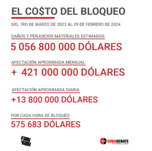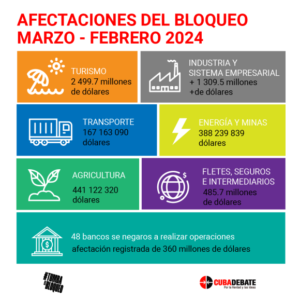 De acuerdo con el último informe presentado por La Habana en septiembre pasado, el bloqueo ha representado pérdidas a la isla por 5.056,8 millones de dólares entre marzo de 2023 y febrero de 2024.