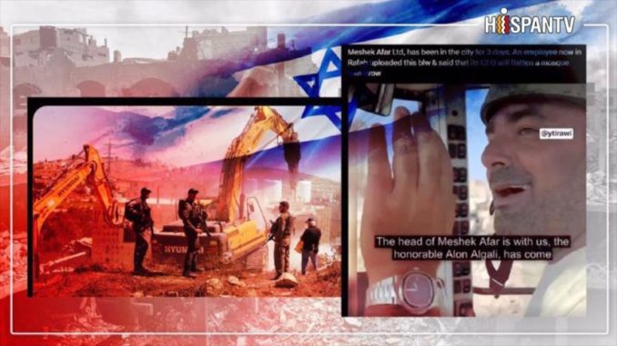 El domingo, Yunis Tirawi, periodista con sede en Gaza, desveló una nueva bomba informativa, compartiendo en X (anteriormente Twitter) un vídeo y fotos que exponían a una empresa israelí privada, Meshek Afar Ltd., contratada por el ejército del régimen, que está demoliendo los restos de edificios en Gaza.