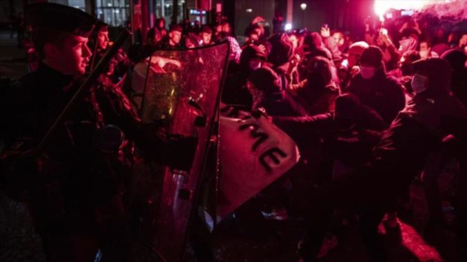 Las fuerzas de seguridad se enfrentaron el miércoles por la noche a un grupo de manifestantes antisraelíes frente a la estación de Saint Lazare de París, la capital. Los agentes intentaron dispersar con gases lacrimógenos y porras a la multitud que gritaba “Palestina libre” e intentaba llegar hasta la histórica plaza de la República.