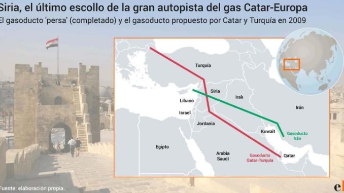 En su lugar se puso en marcha un gasoducto que uniría Siria con Irán pasando por Irak, un proyecto que comenzó en 2013 pero que quedó suspendido ante la ofensiva de las sanciones de EEUU sobre el régimen de los ayatolás. El Instituto de Estudios Energéticos de Oxford explicaba que el proyecto «sigue siendo dudoso. No está claro cómo se financiará una iniciativa de este tipo dado que tanto Irán como Siria están sujetos a estrictas sanciones financieras».