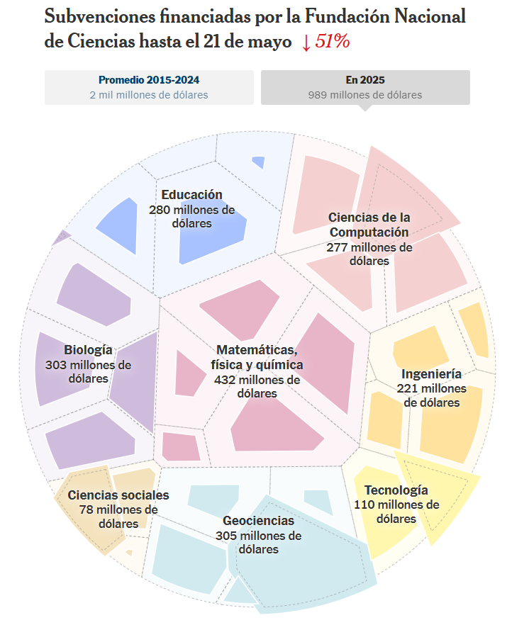 Sin embargo, los datos muestran que la financiación de nuevas subvenciones por parte de la agencia se encuentra en su nivel más bajo desde al menos 1990, cuando la NSF se expandió a su estructura moderna. La financiación se ha ralentizado aún más desde el 30 de abril, cuando se ordenó a los empleados de la agencia que suspendieran por completo la concesión de fondos, según un correo electrónico consultado por The New York Times.