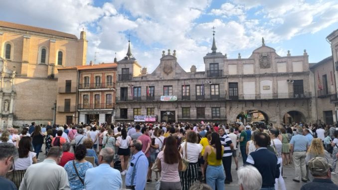 La tarde del jueves 29 de mayo alrededor de 500 personas se reunieron frente al ayuntamiento medinense, en la Plaza de la Hispanidad, para protestar contra la supresión de la parada en la Ciudad del Mueble de varios AVEs que cubren el trayecto entre Madrid y Galicia a partir del próximo 9 de junio.