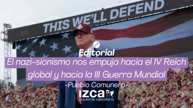 La actual presidencia de Donald Trump, acompañado de su vicepresidente Vance, es la gran oportunidad para que la oligarquía yanqui, con diversos aliados en el mundo, sobre los que más adelante haremos algunos comentarios, ponga en marcha su proyecto de construcción del IV Reich, en este caso a nivel global. Para la humanidad ese proceso va a traer graves consecuencias, ya están aquí, y para las clases populares mucho sufrimiento; si finalmente ese proyecto neonazi triunfase, supondría sin género de dudas la entrada en una de las etapas más oscuras de la humanidad, al menos en los últimos siglos. Si la derrota del nazismo en el siglo XX era necesaria para el avance de la civilización, derrota que obviamente fue incompleta, en esta nueva fase se trata de una cuestión de vida o muerte para la humanidad y la naturaleza. Y no es una reflexión solo referida a los efectos del uso de armas nucleares, altamente probable en esta III Guerra Mundial que Trump y sus colaboradores impulsan meticulosamente (la elección del nuevo papa yanqui, León XIV, bajo la clara influencia de Vance, es un ejemplo de ello). No, nos referimos esencialmente al modelo socioeconómico y cultural que se impondría al mundo en caso de que el “bando demoníaco” ganase esa guerra. Es por ello que las organizaciones y movimientos progresistas hemos de volcarnos en evitarlo. No será tarea fácil, pero sí posible, e incluso probable si las cosas se hacen bien.