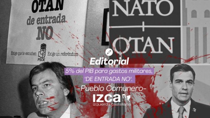 Ahora estamos en una situación con ciertas similitudes: en aquellos momentos se trataba de organizar la fase final de la llamada “Guerra Fría” contra la URSS y actualmente se trata de contribuir a la preparación de la III Guerra Mundial que el imperialismo impulsa sin disimulos. La maquinaria del PSOE -y la del conjunto del Régimen, en última instancia- se tiene que sacar de la chistera un conejo para intentar engatusar a la opinión pública. Ahí es donde aparece la cuestión del 2,1% del PIB en vez del 5%, cuyo planteamiento, según dicen, parte del propio ejército; no hemos visto ni escuchado a ningún jefe militar apoyando tal cuestión.