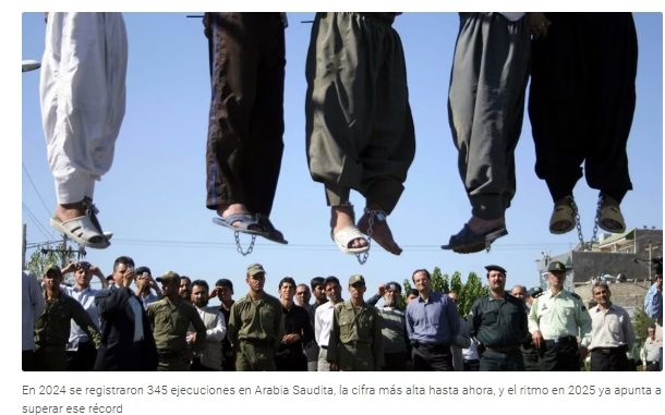 Arabia Saudita ejecutó a 345 personas en 2024, la cifra más alta registrada por Amnistía Internacional desde que comenzó a documentar la pena capital en el reino en 1990. En el primer semestre de 2025 ya se registraron 180 ejecuciones, por lo que todo indica que se podría superar el récord del año anterior.