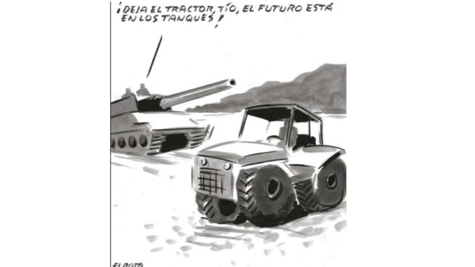 «Los hechos marcan prioridades: entre tractores y tanques, entre futuro para los jóvenes agricultores y misiles para blindar fronteras, entre alimentación y defensa, Von der Leyen ha elegido recortar un 22% los fondos agrarios y multiplicar por 5 el gasto militar”.