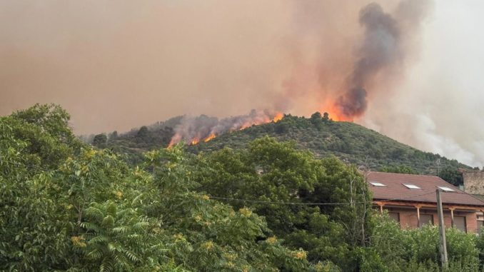 Casañas atiende a El Salto antes de acudir a las labores de extinción en las que anda todo el pueblo manos a la obra. En concreto, están cavando una zanja para impedir que el fuego llegue a las casas. Alfredo Román explica que, sobre todo los jóvenes, se han volcado con las labores para aplacar el incendio, también con el reparto de alimentos y bebidas, “y jugándose la vida”, enfatiza.