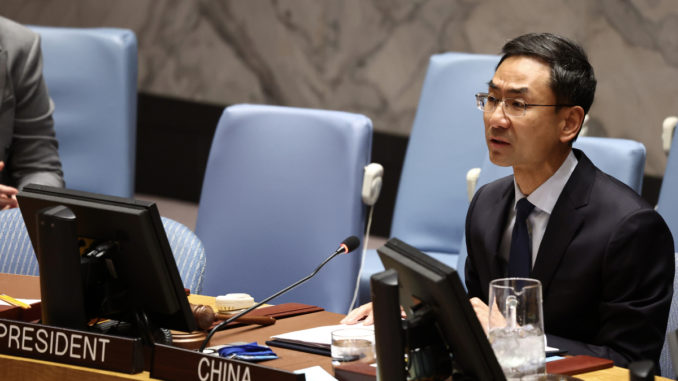 El Representante Permanente Adjunto de China ante las Naciones Unidas, Geng Shuang, intervino el martes en una sesión abierta del Consejo de Seguridad sobre la cuestión palestino-israelí, instando a un alto el fuego inmediato y duradero, a la implementación de la solución de dos Estados y al establecimiento de un Estado palestino independiente.