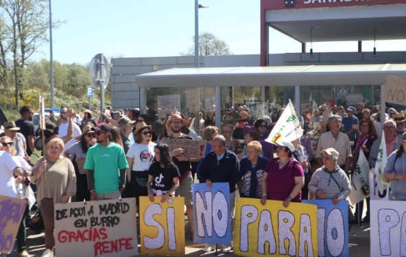 La protesta reclama la recuperación de las frecuencias suprimidas de trenes AVE en la estación de Otero de Sanabria. López de la Parte denunció que actualmente «cada día pasan 22 trenes por la estación y solo paran tres».