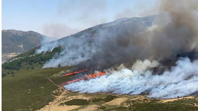 El primer aviso se recibió el domingo sobre las once de la mañana en Resoba, una localidad de Cervera de Pisuerga, la cabecera de comarca que está a los pies de la Reserva Natural. Dos días después se activó el nivel de riesgo máximo por la evolución de las llamas y su proximidad a núcleos habitados. Todavía se desconoce el origen del incendio, aunque se baraja que fuera provocado por algún rayo. “Al principio no había accesos por tierra al incendio, que se inició en el Pico Carazo, a más de 2.000 metros de altitud. El personal de tierra a lo mejor necesitaba andar una hora a pie con deniveles de 400 metros para poder acceder al fuego. Y en la noche del domingo al lunes, el fuego avanzó como que si fuese de día por la alta temperatura y los cambios del viento”, explica un agente medioambiental que ha trabajado el fin de semana en el operativo.