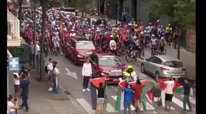 Olot atura #LaVuelta25 en protesta contra el genocidi.