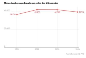 Los datos de la oficina europea suman indistintamente a los bomberos especializados en incendios urbanos, normalmente en edificios, y a los forestales. No hay estadísticas oficiales que permitan diferenciar entre estos profesionales, aunque los sindicatos tienen sus propias estimaciones: CC OO calcula que en agosto hay unos 24.000 bomberos forestales en España, de los que solo 12.000 trabajan durante el invierno en labores preventivas.