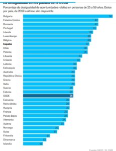 La OCDE sostiene que, de media, una cuarta parte de las diferencias socioeconómicas se explica por razones impuestas o heredadas. En España, la proporción supera el 35%