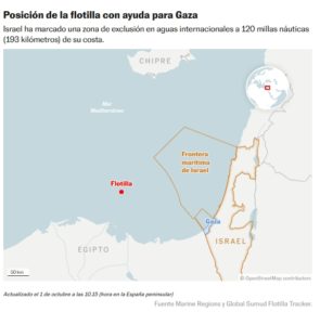 El Gobierno de España reiteró en la noche del martes a los integrantes de la flotilla que el buque Furor, enviado para asistir a la misión y que se suma al de Italia, no iba a poder entrar en la “zona de exclusión” establecida por el ejército israelí y que, por tanto, recomendaba encarecidamente que desistieran de proseguir. Fuentes de La Moncloa inciden en que la misión “es encomiable y legítima, pero las vidas de sus integrantes tienen que estar por encima”.