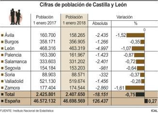 Castilla y León es la comunidad española con mayor retroceso del padrón y la provincia encabeza la sangría, con 2.860 habitantes menos
