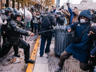 Las cuatro fuerzas de seguridad atacaron a los manifestantes que estaban en la vereda y en la plaza. Nuevamente, los trabajadores de prensa fueron agredidos. [SIGUE]