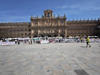 Decenas de vecinos de Villamayor, Babilafuente, Machacon y Tornadizos se concentraron el pasado domingo, 27 de julio, en la Plaza Mayor de Salamanca para manifestar [SIGUE]